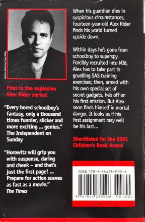 Within days he's gone from schoolboy to superspy. Forcibly recruited into MI6, Alex has to take part in gruelling SAS training exercises; then, armed with his own special set of secret gadgets, he's off on his first mission. But Alex soon finds himself in mortal danger. It looks as if his first assignment may well be his last...