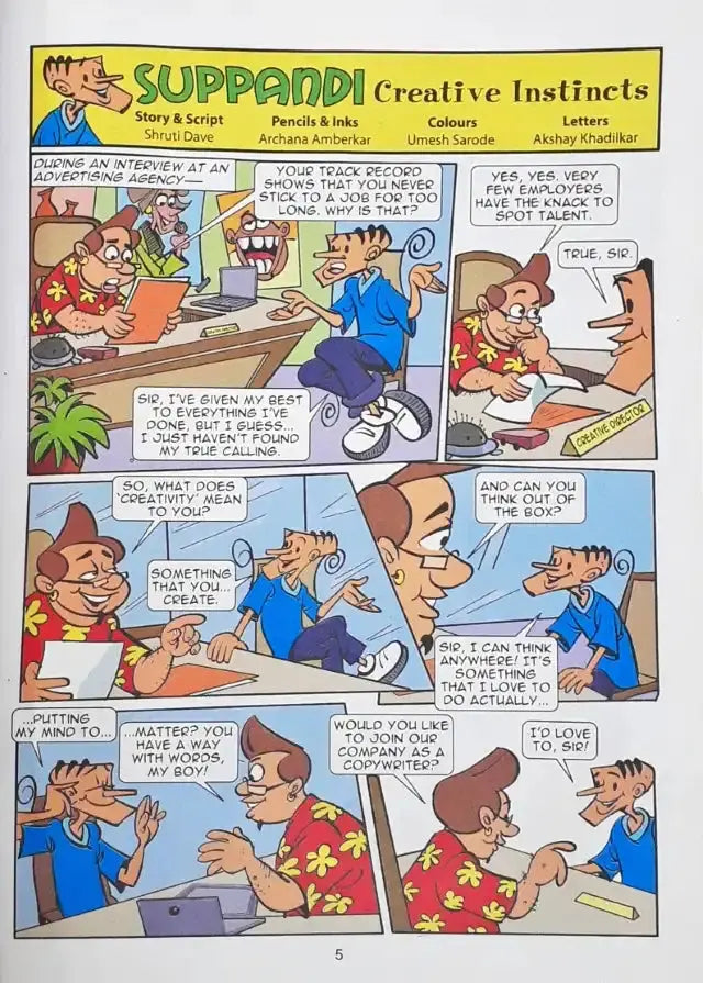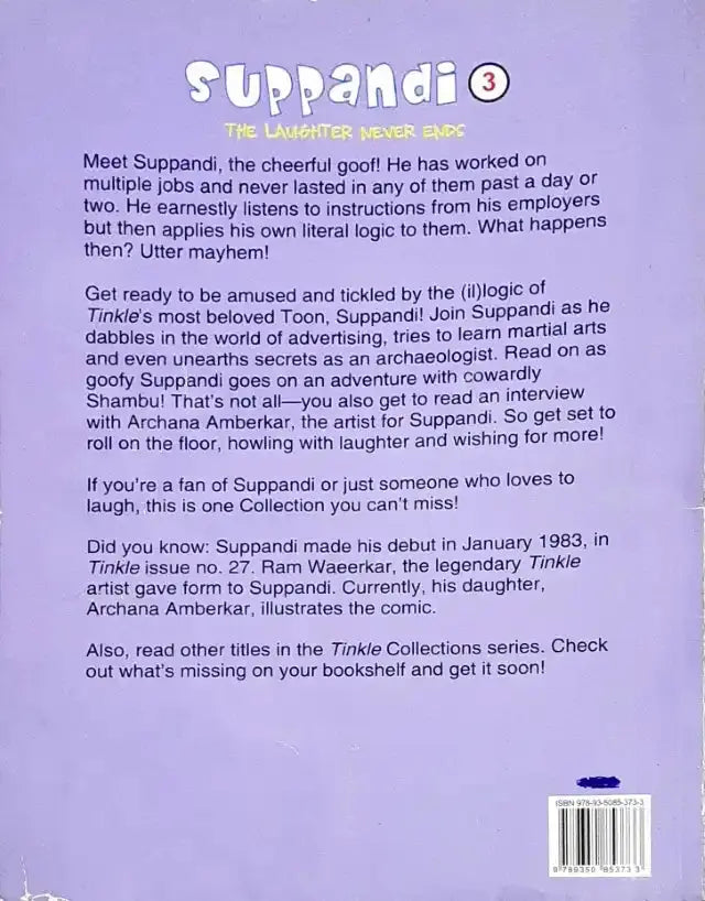 Prepare for a laughter-packed ride with Tinkle's endearing character, Suppandi! Brace yourself for the comical escapades of Suppandi as he ventures into the realms of advertising, attempts to master martial arts, and uncovers hidden secrets as an archaeologist. Follow the amusing exploits of the goofy Suppandi as he embarks on adventures alongside the timid Shambu. And that's not all – delve into an exclusive interview with Archana Ambedkar, the talented artist behind Suppandi. Get ready to be entertained, as you find yourself rolling on the floor in fits of laughter, eagerly wishing for more hilarity.