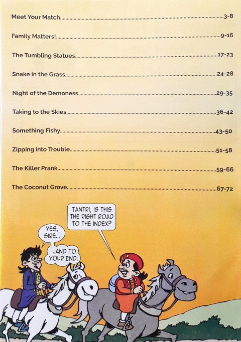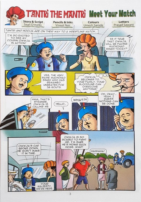 Enter the treacherous lair of Tantri the Mantri - a cunning mastermind with his sights set on the throne of Hujli. Despite numerous setbacks, Tantri has made remarkable progress in his quest to seize power in recent years. His unwavering determination has led him to enter a wrestling ring, sample perilous foreign delicacies, and even dodge falling coconuts in pursuit of his goal. With such fervor, Tantri's coronation day may be closer than we think. Don't miss out on the action - grab your copy today and mark your calendar for this momentous occasion.