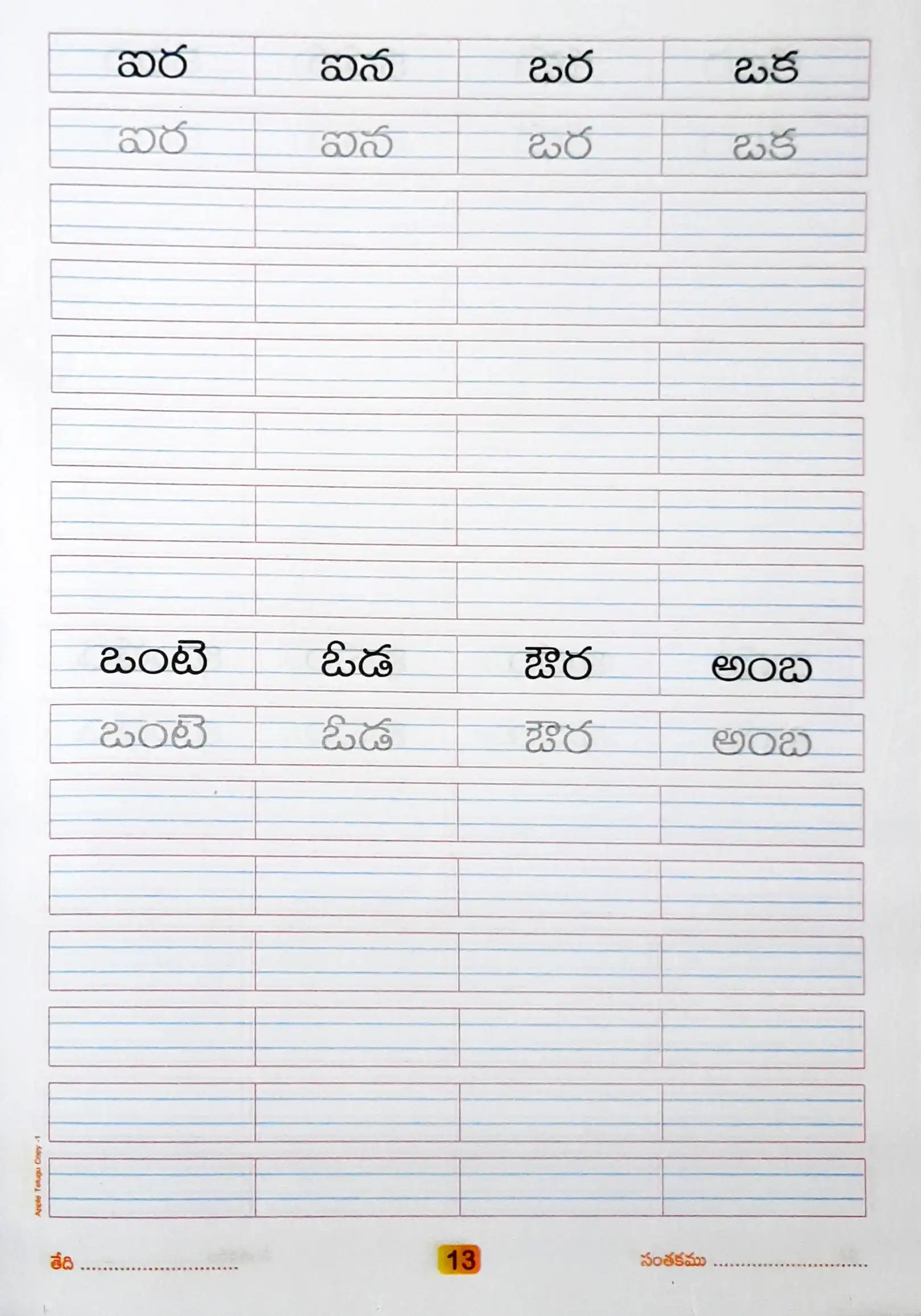 This book provides enough pages to practice Telugu copy writing for better handwriting covering letters, words, sentences