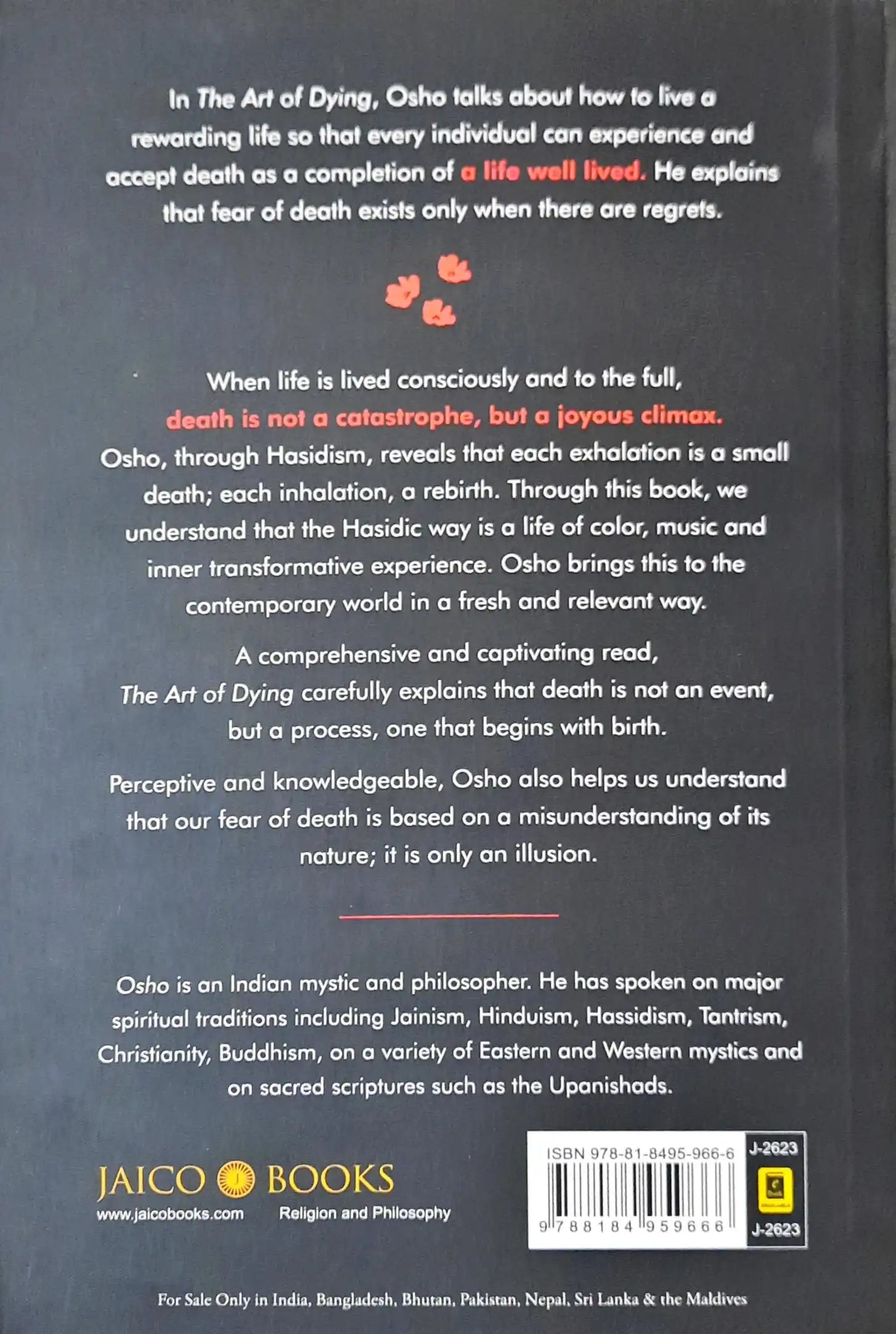 In The Art of Dying, Osho invites readers on a profound journey to understand the connection between life, death, and conscious living. Drawing from the vibrant wisdom of Hasidism, Osho shows how death is not an end, but a natural and beautiful culmination of a life lived with awareness.