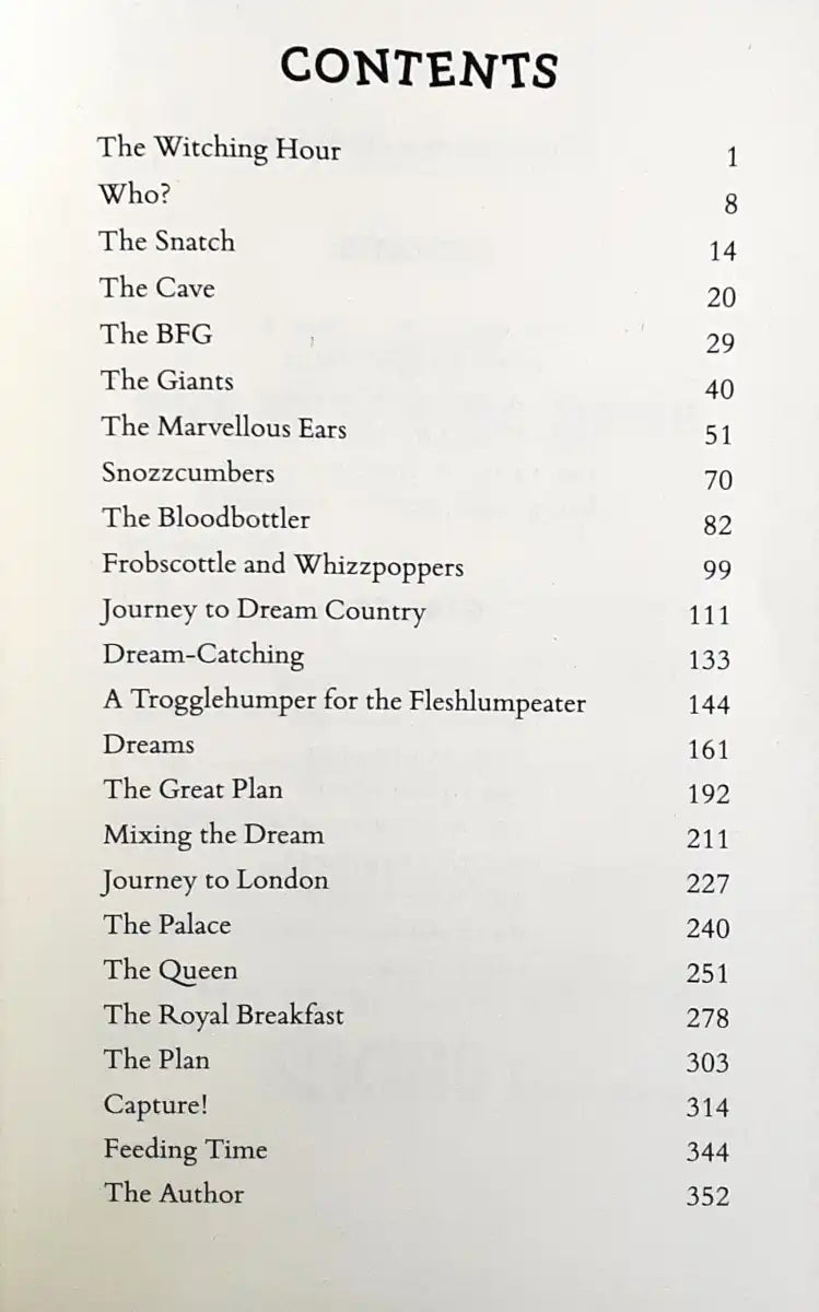 Captured by a giant! The BFG is no ordinary bone-crunching giant. He is far too nice and jumbly. It's lucky for Sophie that he is. Had she been carried off in the middle of the night by the Bloodbottler, the Fleshlumpeater, the Bonecruncher, or any of the other giants-rather than the BFG-she would have soon become breakfast. When Sophie hears that they are flush-bunking off in England to swollomp a few nice little chiddlers, she decides she must stop them once and for all. And the BFG is going to help her!