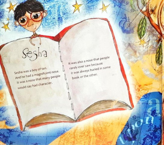 Sesha is a silent boy. He reads all the time and writes furiously in his little brown book. But when he speaks, no one understands him. Shilo Shive Suleman’s unusual but striking illustrations bring out the spirit of Lavanya’s touching story about a boy who is different