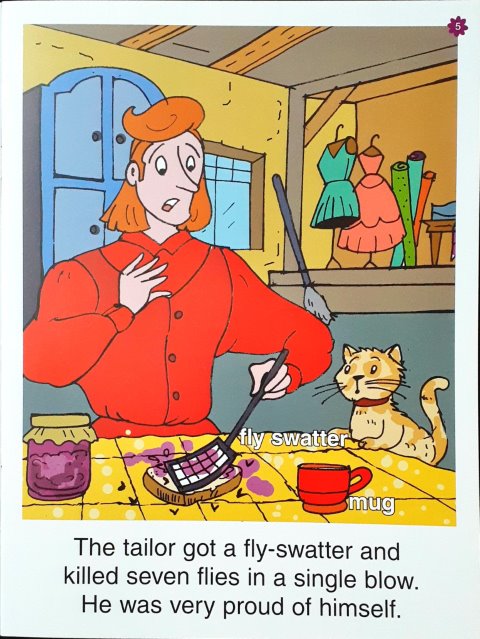 Seven at one blow. The tailor had killed seven flies at one blow. But he wants to show the world that he is strong enough to kill seven men too. Difficult words are highlighted with pictures to develop a better understanding along with an activity page at the end Fairy Tales for Early Readers is a series that helps you introduce your child to the world of books. Each story has been carefully created, keeping in mind the world of the young reader. Every title is beautifully illustrated and has simple language, opening up the world of fairy tales for the early reader.