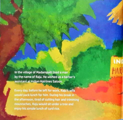 Raju has a humble lunch every day. One day, he discovers the delicious smell of yummy bajjis coming from Babu’s stall. He soon starts to have the most wonderful lunch – purely in the form of smells! But when Babu figures out what he is doing, he demands payment for these smells. How will Raju manage to pay for smells? A feast for the senses, this book by Pankaja Srinivasan is illustrated by Satwik Gade.
