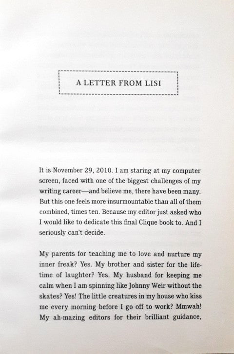 Get ready for the grand finale as Massie Block, fashion icon and leader of the Pretty Committee, faces the culmination of boy drama, clique rebellions, and envious adversaries. For thirteen thrilling novels, loyal fans have immersed themselves in the captivating world of Massie, Alicia, Dylan, Kristen, and Claire, propelling The Clique to unprecedented success. Now, after countless scandalous escapades, it's time for the Clique's final act. Saying goodbye is never easy, and bidding farewell to this beloved series proves to be just as challenging as gaining entry into their exclusive circle. Brace yourself for a memorable conclusion as The Clique takes its last bow.