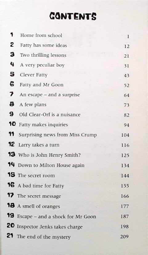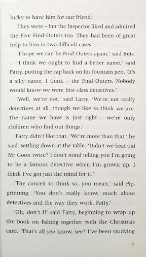 In the cold and foggy Christmas holidays, it doesn't seem as though the Five Find-Outers and Dog will have anything exciting to investigate. Fatty's got some wonderful new disguises, but there doesn't seem to be any mystery for them at all this time. Then Pip stumbles on a single furnished room in an otherwise deserted house. They try to find out whom the house belongs to, but they're not making much progress - until Fatty decides to go to the house to see what he can uncover. Suddenly trapped by the men inside, he writes a note to his friends, apparently innocuous enough, but with another secret message hidden beneath it. Mr Goon has tried investigating the house too, but only ends up locked in the coal cellar and covered in dust. The rest of the Find-Outers call Inspector Jenks to help Fatty, and find the house has been a place for storing stolen goods and the men inside are wanted criminals. Another mystery safely solved! The Five Find Outers And Dog Series by Enid Blyton