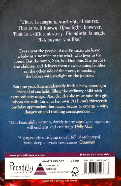 Xan's role involves rescuing the abandoned children and safely delivering them to nurturing families on the forest's far side, sustaining them with the gentle illumination of starlight during the journey. A peculiar incident occurs when Xan inadvertently imbues a baby with moonlight instead of starlight, infusing the child with extraordinary powers. Named Luna, the girl becomes Xan's responsibility to raise.