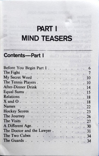 This book consists of 75 utterly original and totally tantalizing brain teasers from master puzzler George J. Summers. He brings out fascinating challenges in situations as common as a game of tic-tac-toe or tennis or as strange as a land of habitual Truth tellers and Liars. These puzzles and teasers are constructed with clues, helpful solution and detailed answers that show you step-by-step how a teaser or a puzzle is unraveled.