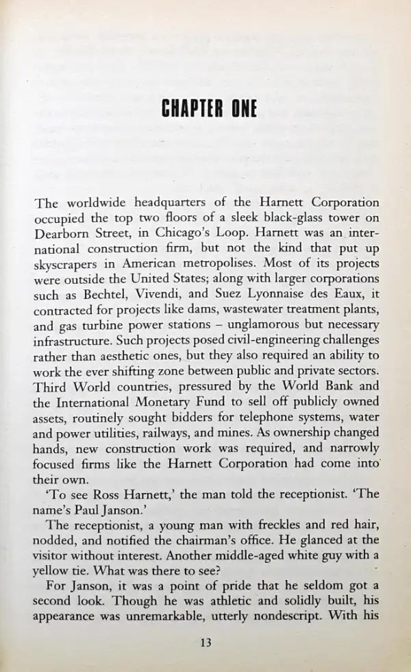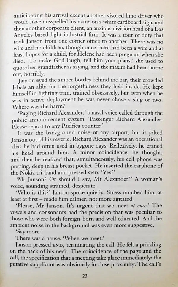 Paul Janson is a retired operative, now a highly sought-after and extremely selective security specialist. The spy game ended up costing him everything that was most important to him and it would take a lot to lure him back into it. Unfortunately, the one person to whom Janson's personal debt is so large that he could require anything of Janson is calling in his marker. Peter Novak, the legendary Hungarian immigrant and head of the Liberty Foundation, has been kidnapped and faces execution at the hands of terrorist extremists. It is up to Janson to rescue him before Novak is murdered. Janson puts together a top team immediately and manages the nearly impossible task of extricating Novak, but something goes horribly wrong - something that indicates that his operation has been compromised from the start - and only Janson himself survives. Now the major intelligence services think that Janson was responsible for Novak's death and are sending their finest operatives after him ...