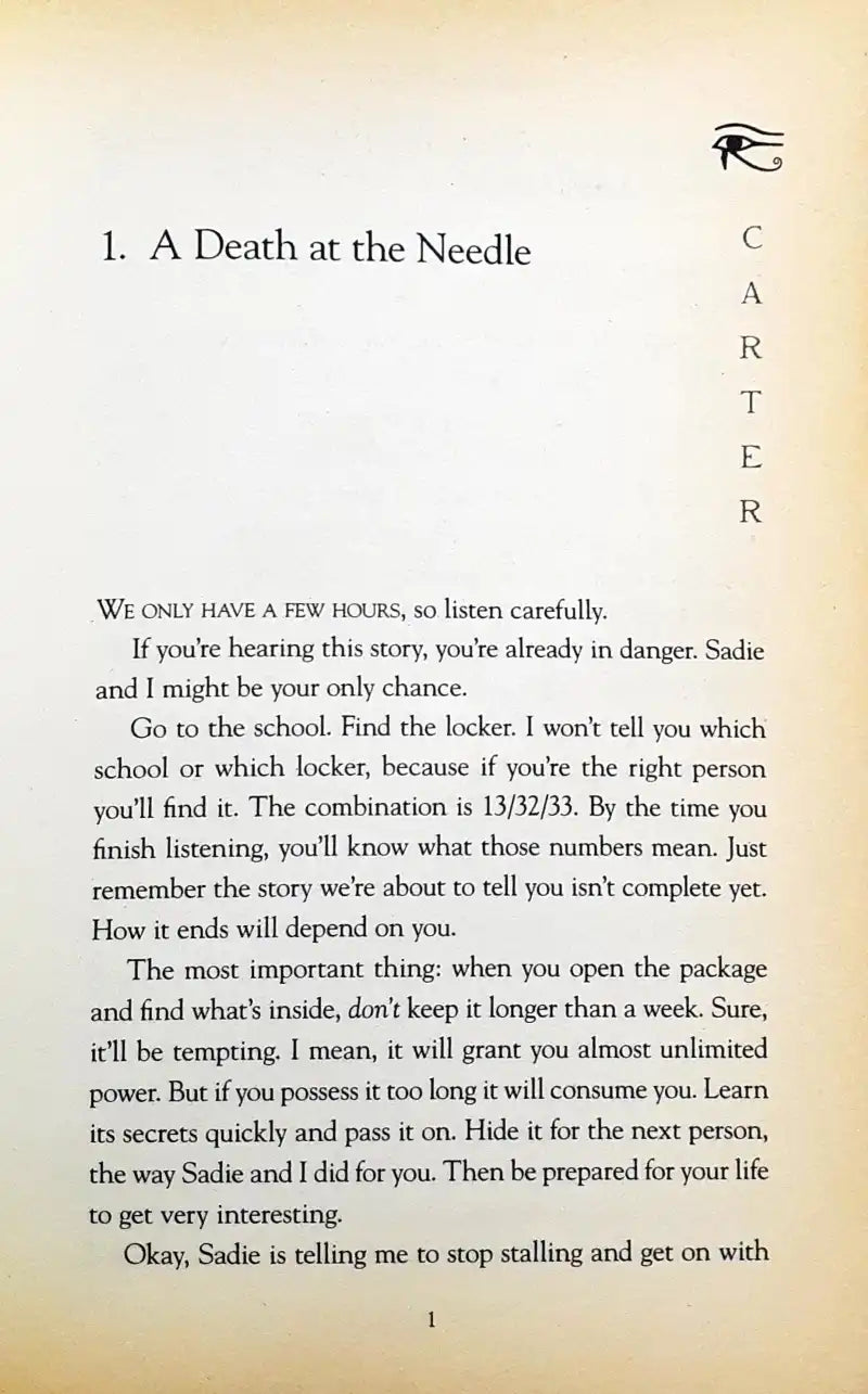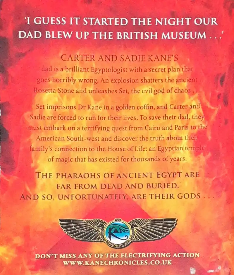 The ancient pharaohs and their gods may seem long gone, but as Carter and Sadie soon discover, their powers still wield immense influence in the modern world...