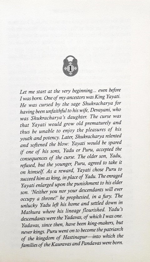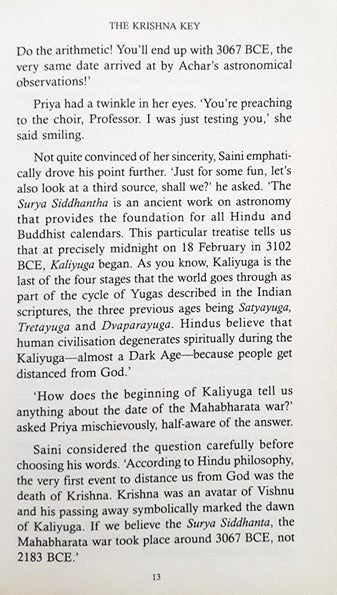 Historian Ravi Mohan Saini must breathlessly dash from the submerged remains of Dwarka and the mysterious lingam of Somnath to the icy heights of Mount Kailash, in a quest to discover the cryptic location of Krishna’s most prized possession. From the sand-washed ruins of Kalibangan to a Vrindavan temple destroyed by Aurangzeb, Saini must also delve into antiquity to prevent a gross miscarriage of justice.