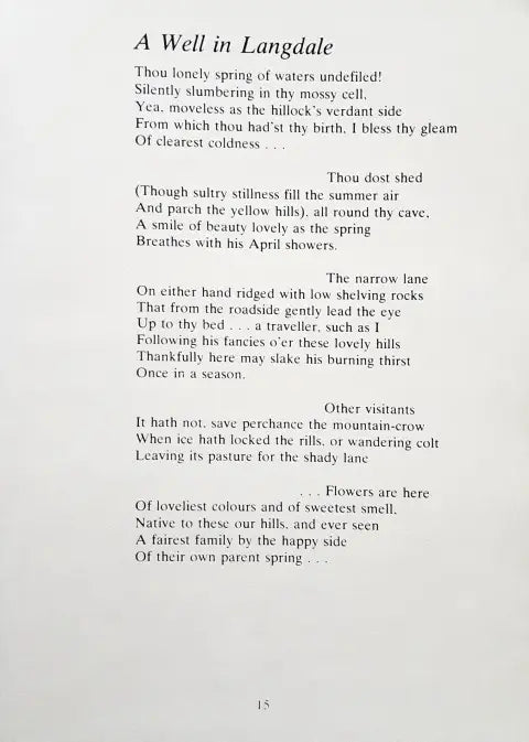 You will find William Wordsworth's poem about daffodils in this collection. Also printed with appropriate illustrations are poems by Coleridge, Southey, Ruskin, Walter Scott and others. They wrote not only about what they saw in the Lake District but about what they felt in the presence of such dramatic scenery of mountain, lake and tarn. Here are the poems by the old masters - The Lake Poets. They continue to inspire all who find pleasure in England's most astonishing tract of countryside.