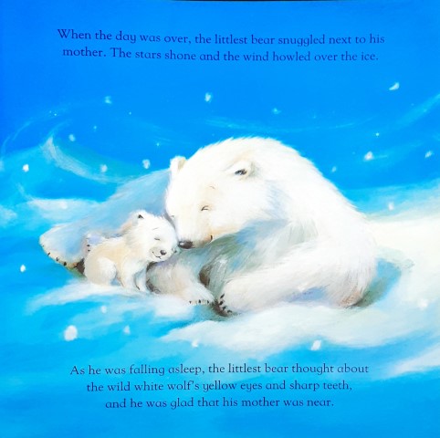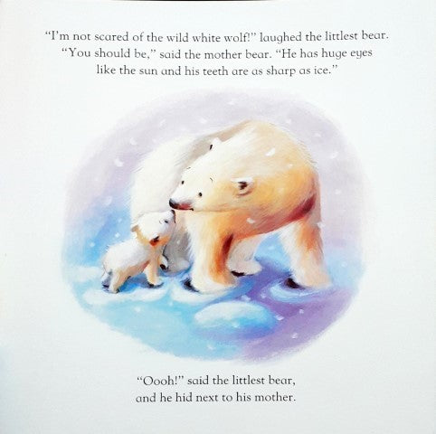 The Littlest Bear loves to play and explore in the snow, but he wishes he had a friend to play with. His mother warns him to stay close so the Wild White Wolf can't catch him. Then, when the littlest bear wanders off one night, he stumbles across another little animal who is wild and white and a wolf!