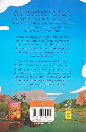 Another fascinating story in the same series as The Magic of the Lost Temple. After staying in the lockdown for over a year, Nooni is now visiting her Ajja-Ajji in Somanahalli. Memories of excavating the famous stepwell and experiencing village life for the first time in The Magic of the Lost Temple are still afresh in Nooniโs mind. Excited to finally step out of the confines of her home, little does Nooni know she will make yet another discovery, only this time itโs a missing puzzle in her familyโs history. Written in Indiaโs favourite storytellerโs inimitable style, The Magic of the Lost Story captures the value of asking questions and keeping the answers alive. Packed with delightful artworks and wondrous terrains, this story takes you on an unforgettable journey as it follows the magnificent Tungabhadra River.ย Book writtenย by Sudha Murthy