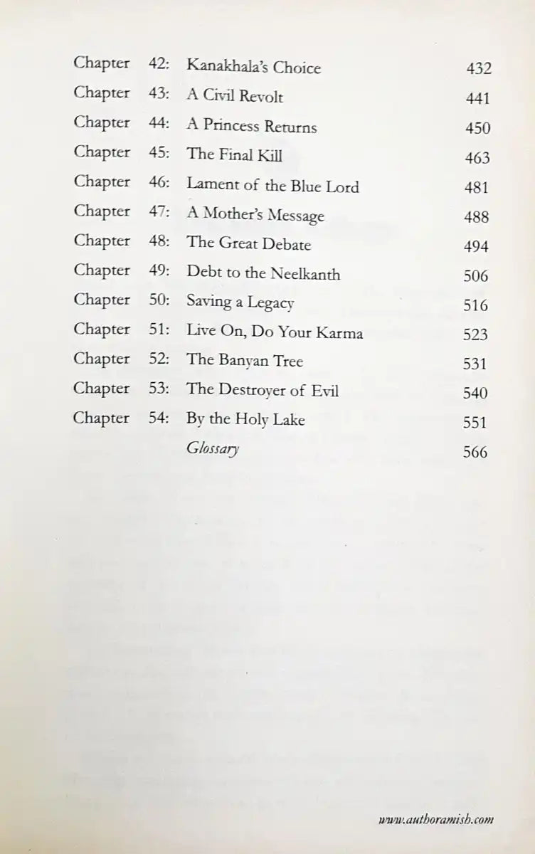Shiva is gathering his forces. He reaches the Naga capital, Panchavati, and Evil is finally revealed. The Neelkanth prepares for a holy war against his true enemy, a man whose name instils dread in the fiercest of warriors.