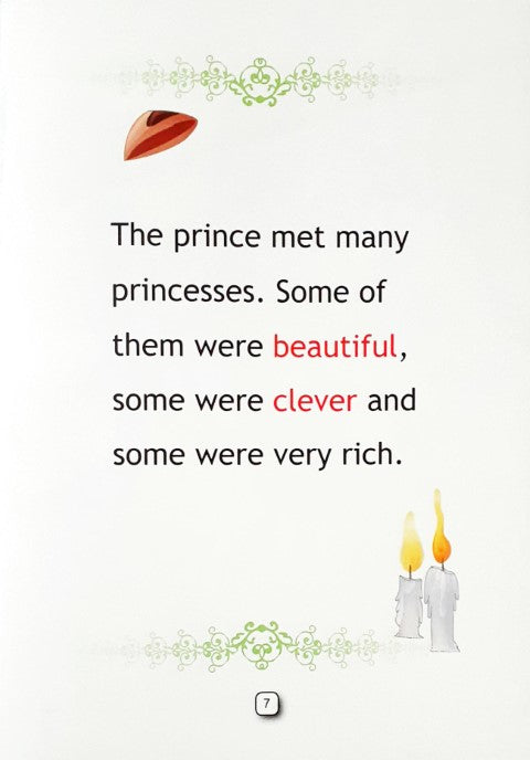 The prince is out to find a true princess whom he can marry. Does he find her? A word bank with difficult words is provided at the end of the book.