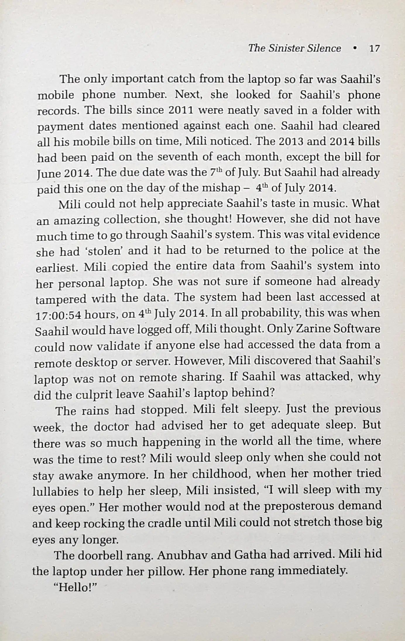 In The Sinister Silence, ace software engineer Saahil is found fighting for his life on a rainy morning, and it initially appears to be a suicide attempt. But his family firmly rejects this theory and calls in ex-super cop-turned-detective Mili Ray to uncover the truth.