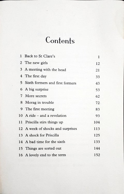 Based upon, and continuing Enid Blyton's St. Clare's series. New girl, Morag, detests St Clare's. She's only happy when she can escape to the local riding stables. But, now they're in the sixth form, the other girls are sad that it's their final year in their adored school. But what's wrong with Morag? Will they ever be able to understand her?