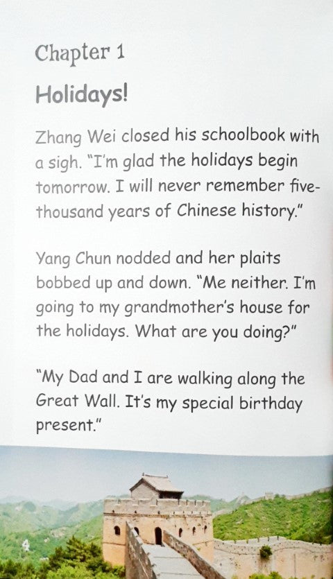 Zhang Wei has the best holiday planned, a hike along the Great Wall of China! But the trip is cancelled when his father must go away suddenly. Mr Zhang makes it up to little Wei with a present he would never have expected. This new full colour Asian stories are contemporary tales set across Asia and the Pacific. Students follow characters their own age in their local environments - at school, at home, in the village, visiting local landmarks - so they can observe everyday life in another culture. How are their lives different to mine? Who works in their families and how? What are their everyday challenges? With a window onto the social and cultural norms of our near neighbours, these books are valuable tools to build both literacy skills and cross cultural understanding. Each beautifully illustrated book includes photography of the local setting, an illustrated glossary, country map and key country statistics, map of the story's narrative structure and comprehension questions.
