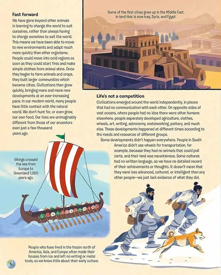 Children will discover how early humans lived, hunted, learned to speak, mastered fire, formed communities, and eventually built cities, nations and global civilizations. With easy-to-understand explanations, fun fact boxes, engaging timelines and a glossary of key terms, this book makes complex ideas accessible and exciting.