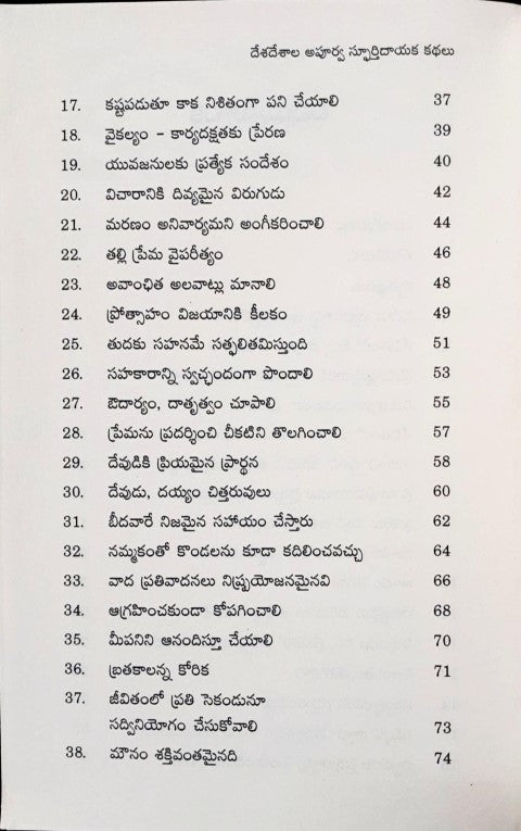 This is one of the many inspiring stories from the renowned Motivator Dr. G. Francis Xavier. Evidently, this harvest of stories has been gleaned from lands he visited and books he read. Xavier, who conducts full-house personal growth courses has brought out this compendium in an interactive form, making the reader give the answers at the end of the story which is a novel approach. Stories and examples are the best way to inspire, and this reasonably priced volume could be useful gifts for people. It is useful for preachers, speakers and teachers. The book appeals to readers of all ages except the morose and irredeemable negaholics (negative thinking addicts) and anti-reading teenagers. It has stories to inspire and promises uninterrupted chuckles till the end. There are also quotations on success.