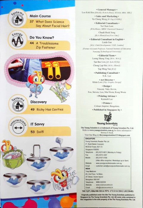 The Young Scientists is a children's comic magazine series which promotes learning through reading and fun. It communicates elements of science to young children in colorful, conversational and comic style stories that are simple and enjoyable. This motivational magazine series inculcates scientific temper, fosters reasoning and application behind the observed day-to-day natural phenomena that ignites a spark of curiosity and creativity at an early age. The content is designed to develop critical, analytical, and process oriented thinking capabilities required to succeed in international science olympiads. These magazines Illustrate life stories of great scientists, their successes and failures, science fiction stories, creative activities, experiments and practice test papers.