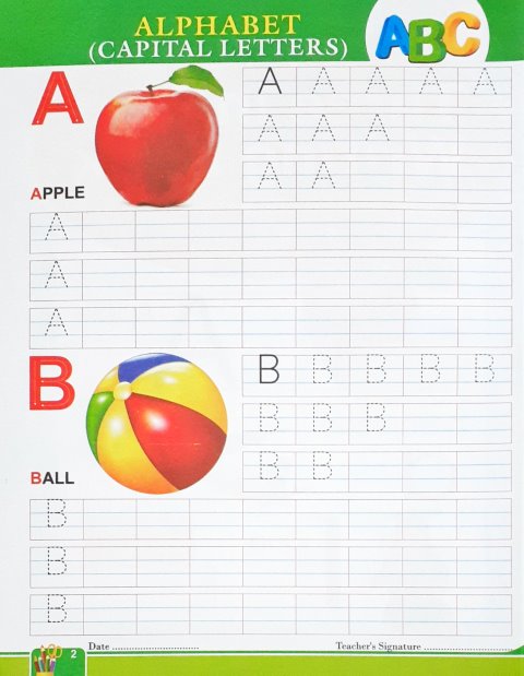 This book provides small letter/lower case, capital letter/upper case alphabet tracing practice & independent writing along with 1 to 100 numbers tracing & independent writing. Based on these alphabets and numbers, few activity pages are also there to apply the learnings