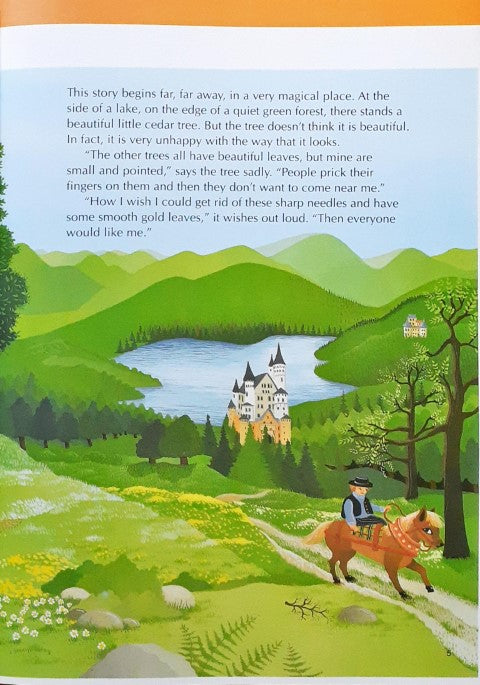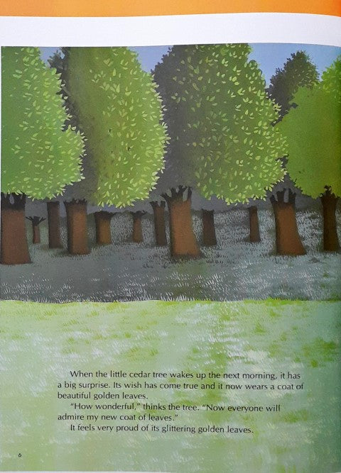 The cedar tree is unhappy with the way it looks and makes several wishes to change its coat of leaves. By magic, each wish comes true but the tree finds that the new coats will not protect it against the natural dangers that surround it. In the end, the tree realizes just why its own coat of leaves suits it best of all. Part of ETL Books, ETL Learning Timelife