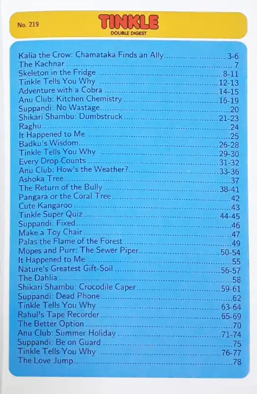 With a diverse array of comics, from action-packed superhero tales to heartwarming friendship stories, Tinkle Double Digest has something for everyone. Dive into the magical world of Anwar, the Genie, as he grants wishes with a twist, and embark on thrilling quests with Kalia the Crow and Chamataka the Fox.