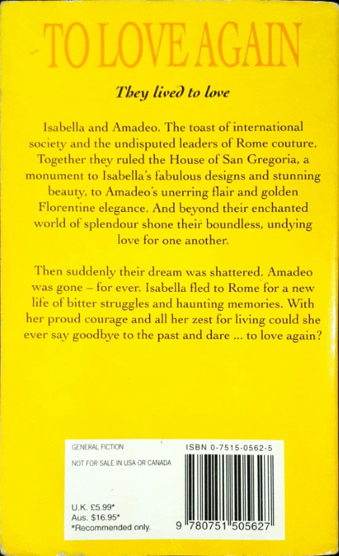 Isabella and Amadeo were the toast of international society and the undisputed leaders of Rome couture, bound together by a deep love. Then suddenly their dream was shattered and Amadeo was gone forever. Could Isabella say goodbye to the past and dare to love again?