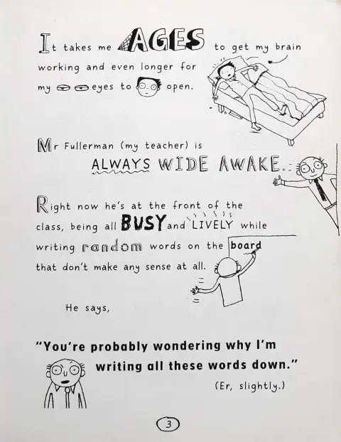 Presented in the form of Tom's well-worn homework diary, it's filled to the brim with his scribbles and narratives. An exhilarating announcement is made by Mr. Fullerman—Class 5F is embarking on an "Activity Break"! It promises to be a delightful experience, provided I'm not placed in a group with someone who snores or, even worse, with... Marcus Meldrew. Delia is already issuing threats about redecorating my room in a comical manner while I'm away, which is rather irksome. My only wish is that the sole surprise awaiting me upon my return is the potential new pet I've overheard my parents discussing. After all, having a pet has always been a cherished dream of mine!