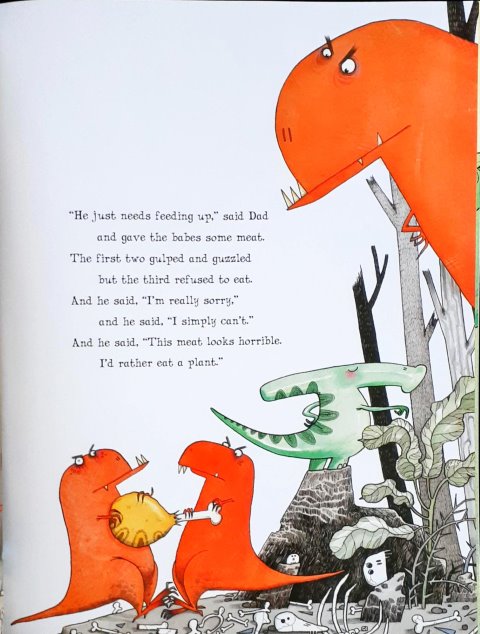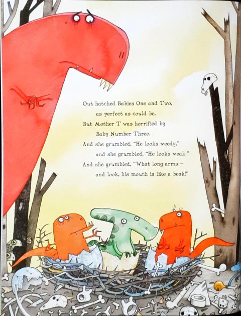 Everyone knows that tyrannosauruses are big and scary, so when a placid duckbill dinosaur's egg ends up in the wrong nest, confusion is sure to ensue! When the baby dinosaur hatches out, he's so out of place that his grisly big sisters call him Tyrannosaurus Drip. Poor little Drip: all he wants is a quiet life munching on water weed . . .