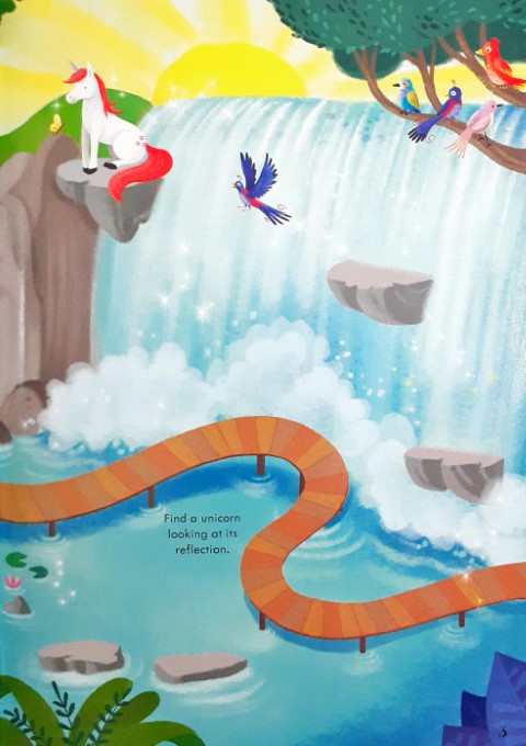 Join the unicorns and their fairy friends as they splash through waterfalls, explore crystal caves and play in the enchanted forest. Add sparkly stickers to bring the fantastical scenes to life.