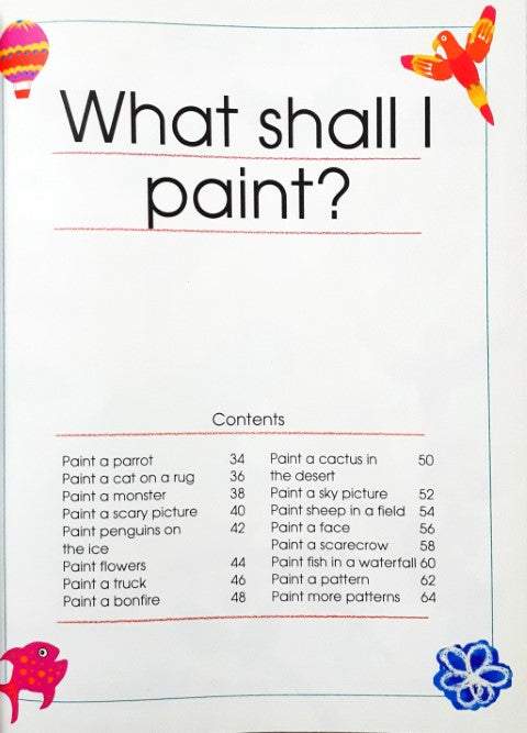 This exciting book contains 50 fun things to do and is bursting with imaginative answers to the familiar question - What shall I do today? How about drawing a tiger in a tree or a teddy bears' picnic, painting a bright parrot or a blazing bonfire or making a snake to curl around your pencil or a talking bird. Each activity uses quick and easy techniques specially designed for a short attention span and the inspiring end results will surprise and delight any young artist.