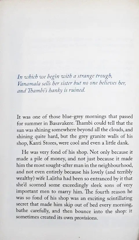 Vanamala advertises the sale of her pesky eight-year-old sister. But trouble soon arrives with a missing sibling, and a note in a magical disused water saying - Dear Varnamala, I have taken your sister and the Boopy. Yours sincerely, The Cephalopod