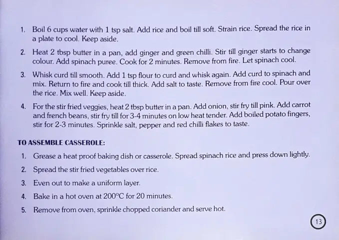 Whether you are looking for a baked dish to serve a family meal or something special to choose for a party, there are lots of ideas for you. The book will help you perfect savoury dishes like Pancakes in Paprika Sauce, Cheese and Bean Enchilladas, Potato Broccoli Au Gratin and many more. The book will also help you master Date and Carrot Tea Cake, Raspberry Date Bars, Fruit Tarts, Chocolate Muffins, besides many others. It also has a special section on baked snacks and baked pastas.