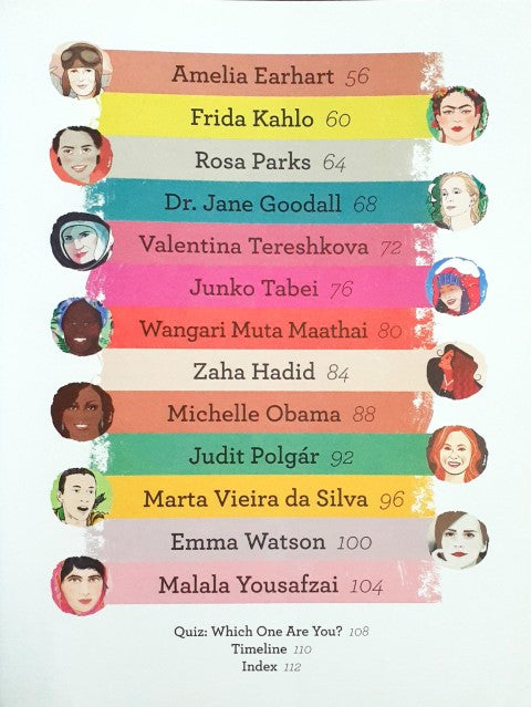 This book presents 25 true stories of trailblazing rebel women, including historic world leaders, brilliant scientists, artists, and modern pioneers. Learn about their incredible achievements and attitudes, as well as the obstacles they overcame, to become feminist icons such as Cleopatra, Amelia Earhart, Malala Yousafzai, and more.