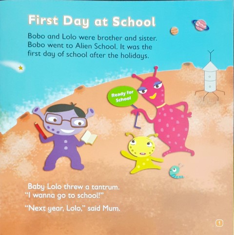 Lolo is jealous of her brother Bobo. This makes her behave rather badly with a rather sticky ending. Curious? Read on to find out what Lolo did in this book. Each book contains a short story, synonyms, story based discussion, short situations, questions and answers & fun facts