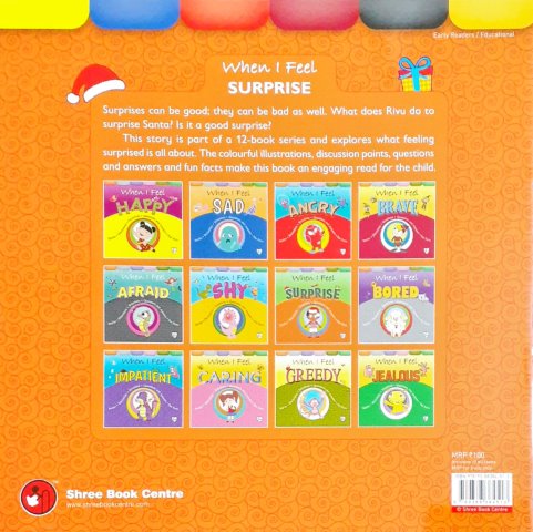 Surprises can be good, they can be bad as well. What does Rivu do to surprise Santa? Is it a good surprise. This story explores what feeling surprised is all about in simple language with colourful illustrations and plenty of things to talk about after. Each book contains a short story, synonyms, story based discussion, short situations, questions and answers & fun facts