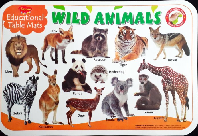 Wild Animals - Educational Table Mats (Wipe & Clean Double Sided)